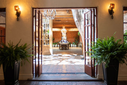 Hand stenciled fresco ceilings draw the eye as you enter the front rooms. The north studio features masculine seating vignettes with divine feminine artwork. The baby grand piano is a sweet serenade ready to be played or can simply serve as another element of rich décor. Wander to the south studio for vintage, well curated seating vignettes, and tasteful artwork. These rooms pair as the perfect setting for cocktails, small bites, conversation, and dancing.